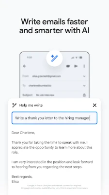 Eficientizează-ți fiecare moment cu instrumente precum Răspunsul intuitiv și Scriere intuitivă, care îți sugerează fraze și corectează gramatica, ajutându-te să redactezi emailuri mai rapid și cu precizie. Navighează rapid printre mesaje cu căutarea instantanee, predicții în timp real și sugestii de ortografie. Gmail îți oferă flexibilitatea de a comuta între multiple conturi cu ușurință și de a atașa și trimite fișiere în câteva secunde. Pentru utilizatorii Wear OS, experiența se extinde la încheietura mâinii, cu posibilitatea de a vizualiza rapid emailurile direct de pe ceas. Cu Gmail, parte a Google Workspace, beneficiezi de un ecosistem complet, sigur și inteligent, conceput să sprijine modul în care lucrezi și comunici, acum și în viitor.