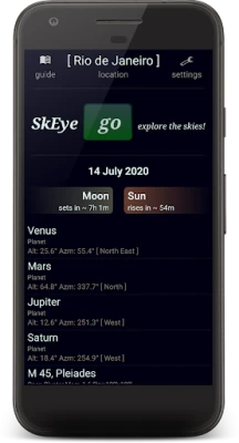 Skeye nu este doar o hartă stelară; este un veritabil laborator astronomic mobil. Călătorește prin timp cu funcția "Mașina Timpului", explorând poziția corpurilor cerești în orice moment din trecut sau viitor. Beneficiază de coordonate Alt-Azimuth și Ecuatoriale în timp real pentru o localizare impecabilă. Pentru pasionații de astronomie cu echipament dedicat, Skeye oferă o funcționalitate revoluționară: alătură-ți telefonul telescopului (OTA) și lasă-te ghidat cu precizie PUSHTO, transformând sesiunile de observație într-o experiență fluidă și exactă. Această inovație de la LavadiP îți permite să țintești cu ușurință chiar și cele mai eluzive obiecte cerești, de la planetele sistemului nostru solar, inclusiv cele patru luni galileene, până la cele aproximativ 180 de obiecte luminoase din mini-catalogul NGC.