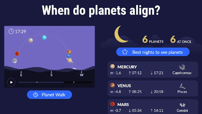 Descoperă universul cu Star Walk 2 Pro: View Stars Day and Night. Această aplicație de astronomie este ideală pentru exploratorii cerului, de la începători la experți. Identifică stele, planete, constelații și alte corpuri cerești în timp real, oricând și oriunde. Ghidul tău personal pentru cerul înstelat.