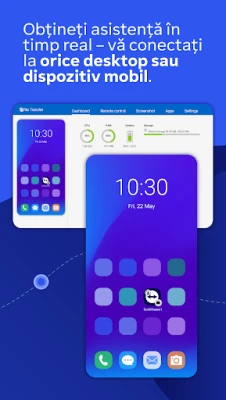 Experiența QuickSupport este îmbunătățită printr-o suită extinsă de funcționalități, concepute pentru a maximiza eficiența. De la controlul la distanță al dispozitivului și chat-ul integrat, până la gestionarea listei de aplicații (pornire/dezinstalare) și vizualizarea detaliată a diagnosticării sistemului, totul este la îndemâna partenerului dumneavoastră, sub supravegherea și aprobarea dumneavoastră. Aplicația permite chiar capturi de ecran în timp real și transferul securizat al informațiilor în clipboard, oferind totodată opțiuni pentru modul întunecat și rotirea ecranului. QuickSupport este conceput pentru a funcționa impecabil pe o multitudine de mărci și modele de dispozitive, incluzând nume de top precum Samsung, Nokia, Sony, Honeywell, Zebra, Asus, Lenovo, HTC, LG, ZTE, Huawei, Alcatel, One Touch, TLC și multe altele, asigurând o acoperire extinsă.